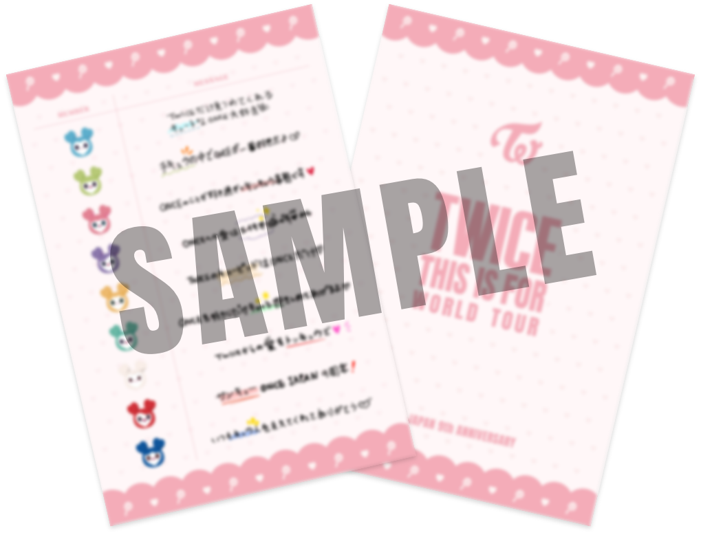 「TWICE <THIS IS FOR> WORLD TOUR IN JAPAN」MUFG STADIUM(国立競技場)公演当日、会場で運営されるFCブースにて【「ONCE JAPAN」、「ONCE JAPAN MOBILE」会員限定】で、TWICEメンバーが書いた「お礼メッセージカード」をプレゼント!