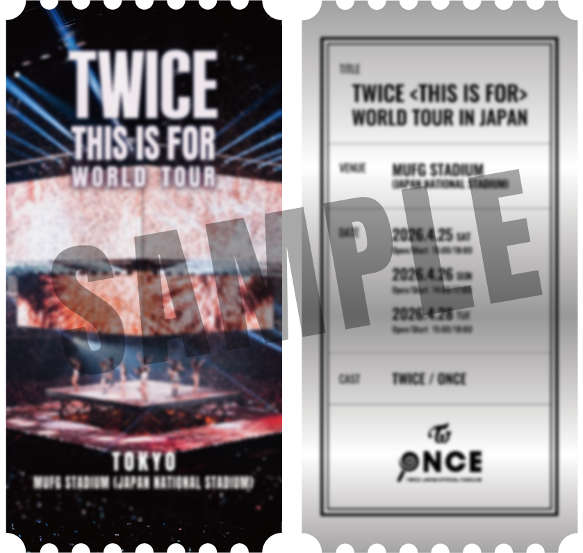 「TWICE <THIS IS FOR> WORLD TOUR IN JAPAN」MUFG STADIUM(国立競技場)公演当日、会場で運営されるFCブースにて【W会員限定】で、<THIS IS FOR>「オリジナルチケット」をプレゼント!
