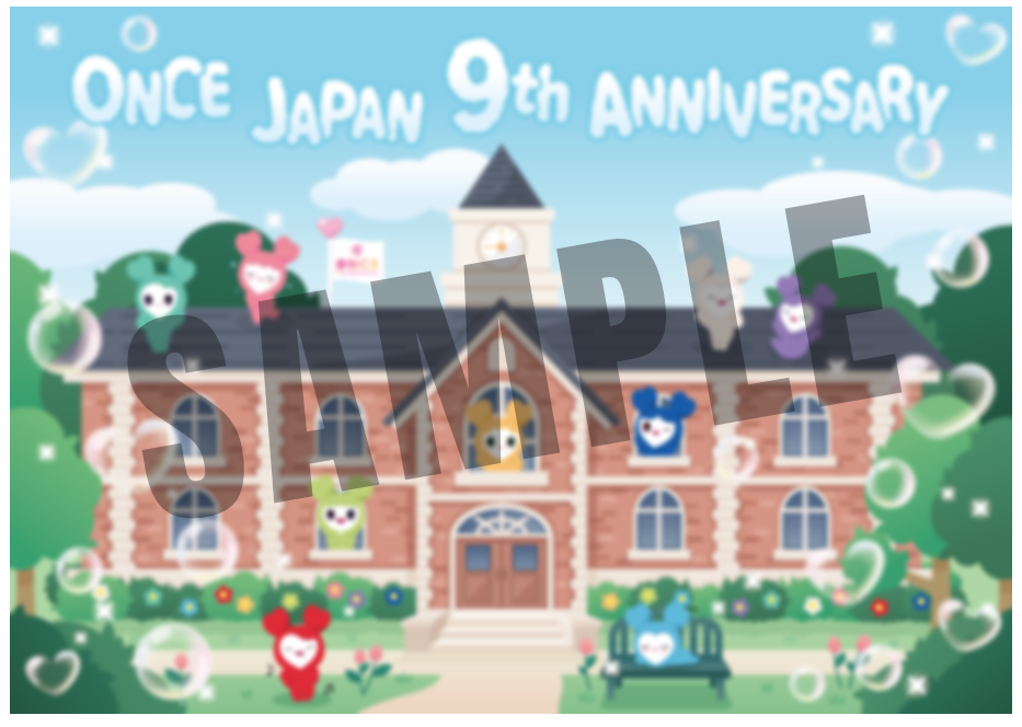 ONCE JAPAN 9周年をお祝いする、可愛いLOVELYSイラストが描かれた「ONCE JAPAN 9周年 クリアポスター」を抽選で、999名様にプレゼント!