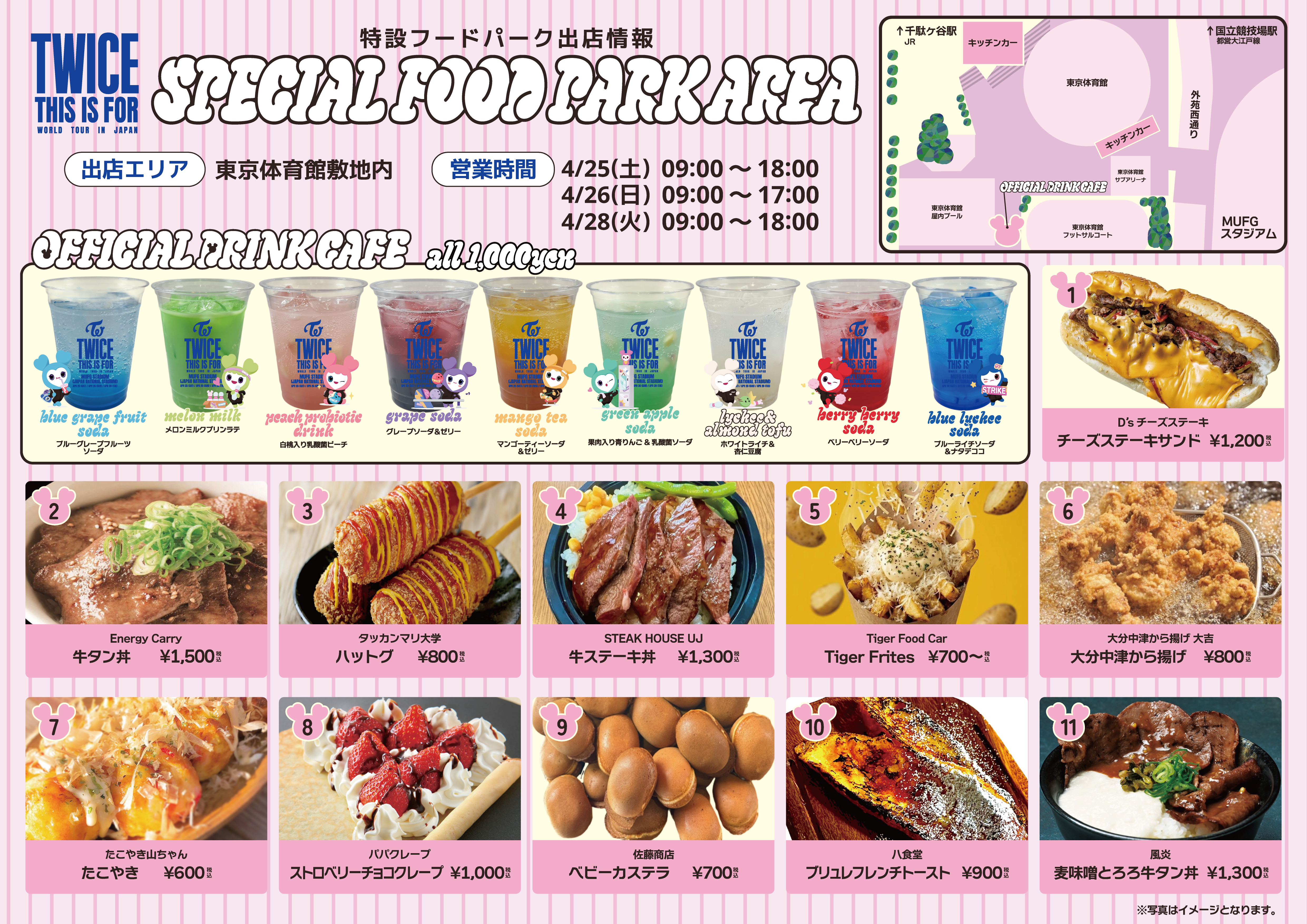 TWICE THIS IS FOR WORLD TOUR@MUFG STADIUM(旧国立競技場)オフィシャルフードパークを4/25,26,28の3日間 東京体育館エリアにてオープンいたします!